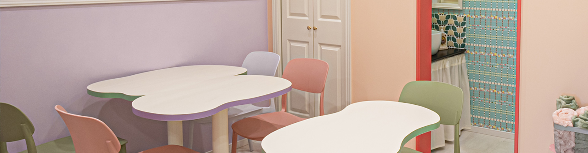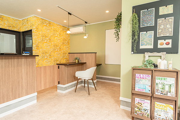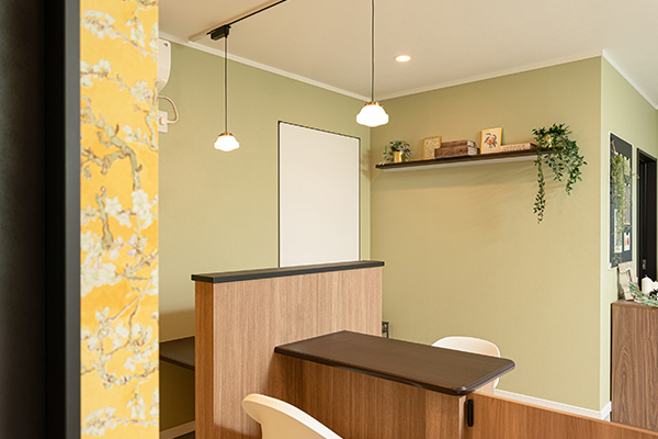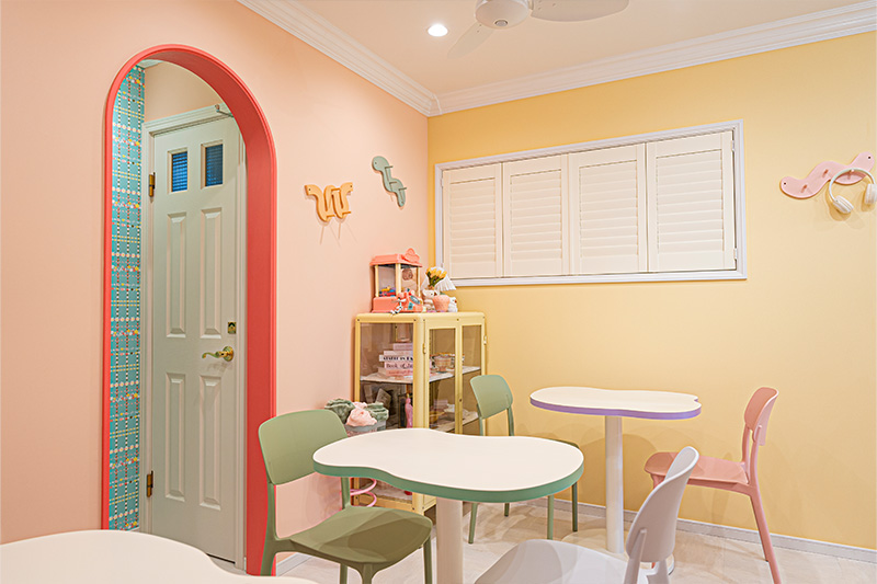 壁面には輸入クロスを施し、カラフルで遊び心あふれるデザインが店内を楽しく彩っています。