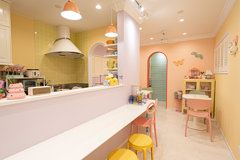 ドアを開けた瞬間、心が弾み、訪れる人が自然と笑顔になるポップなカフェ空間。